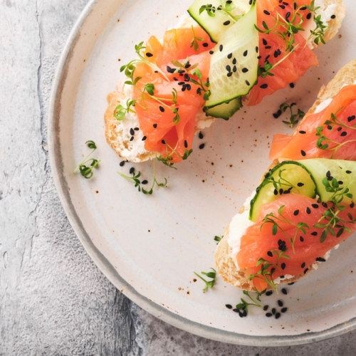 Boiled and roasted fish-filet, smoked salmon, shrimps, asparagus, fresh salad, and homemade dressing.
