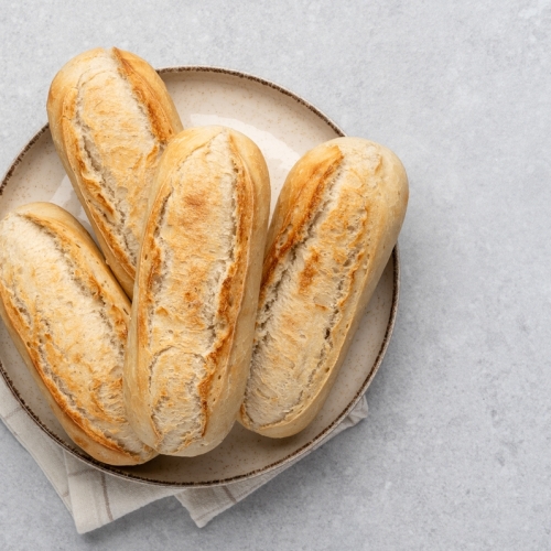 Serveres med hjemmelavet pesto, rucola, tomater, rødløg og agurk.